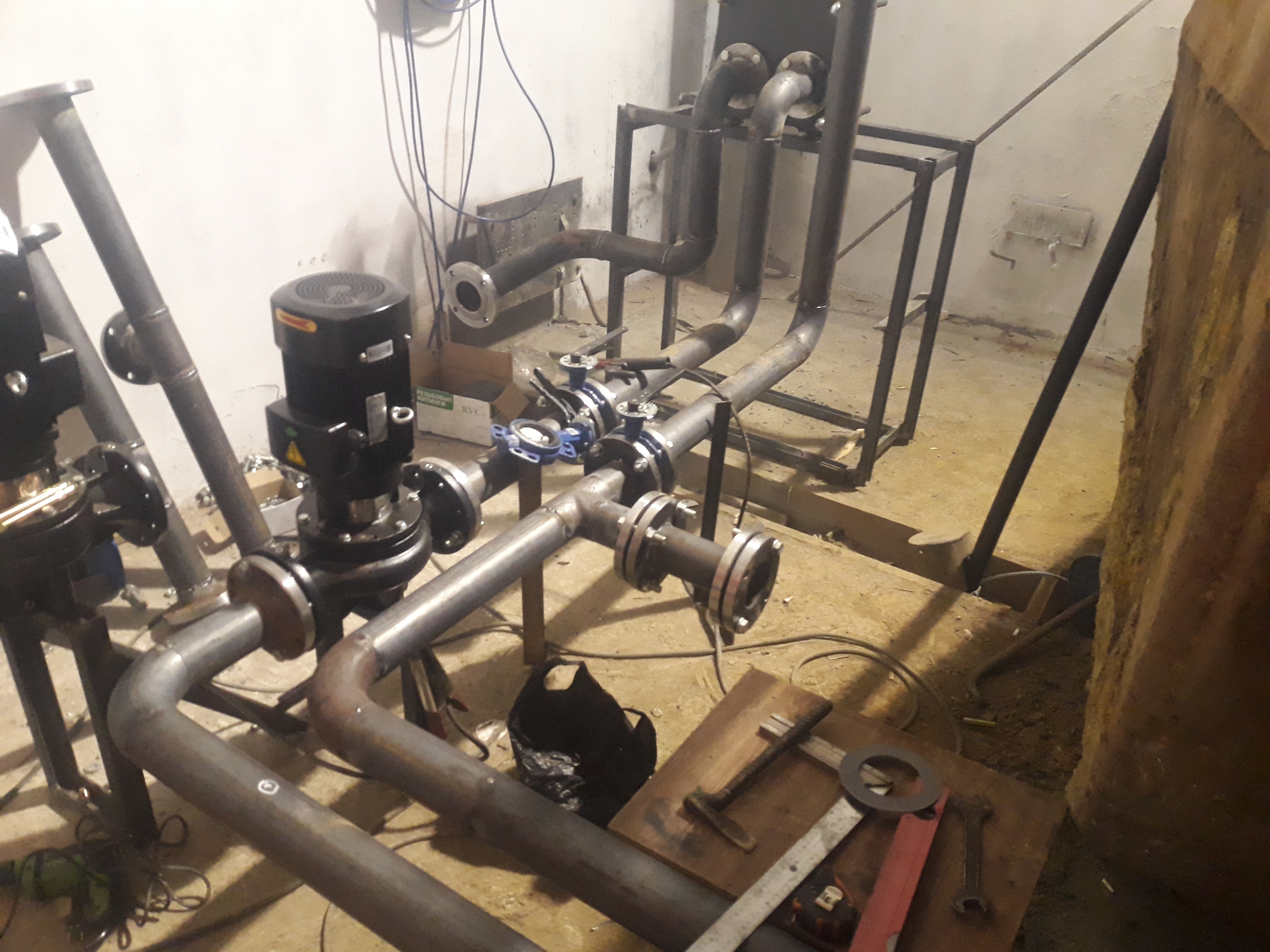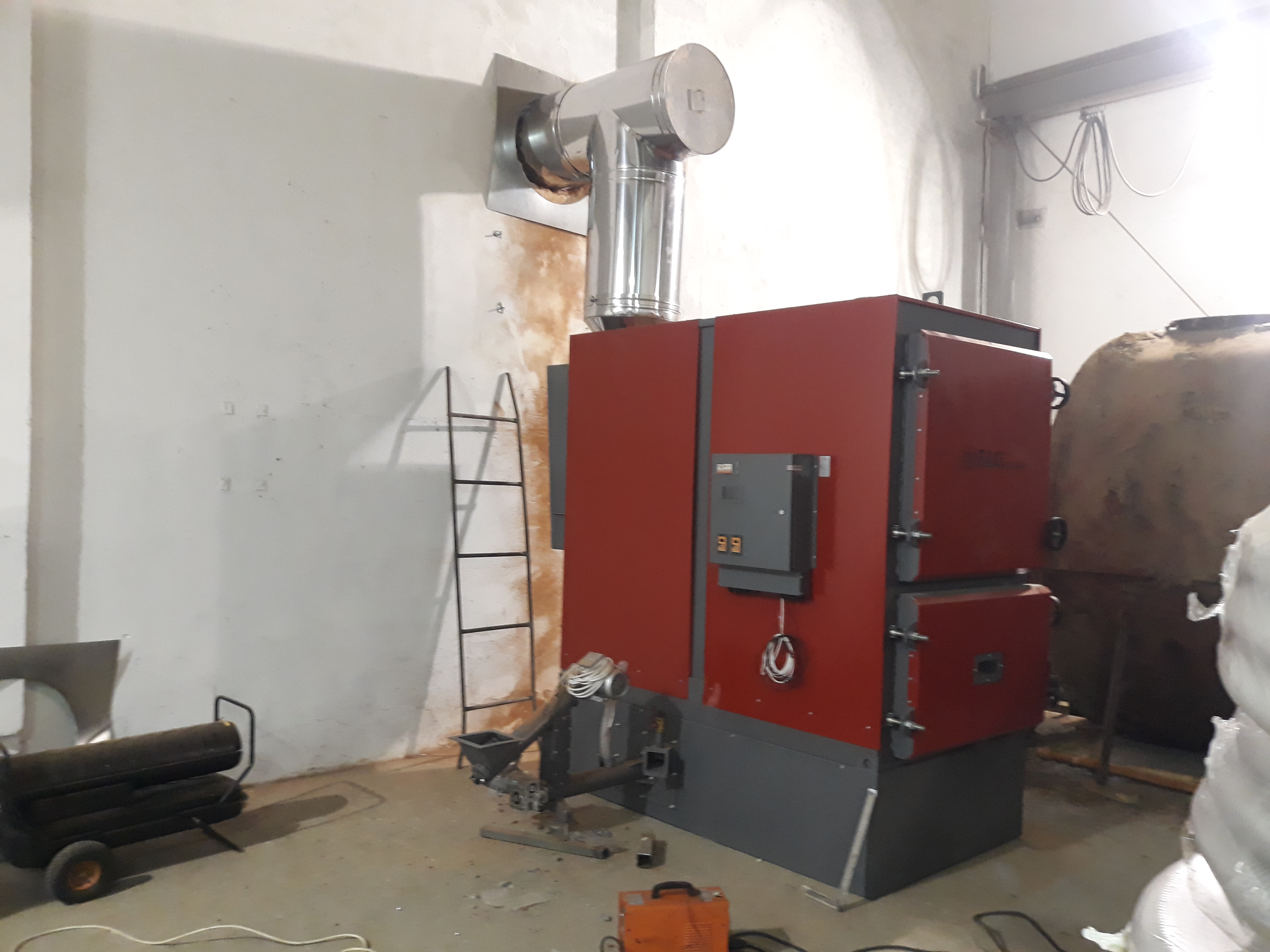 Котельная для нужд производства ЖБИ была полностью реализована силами Завода FACI-RUS, начиная от проектирования и заканчивая запуском котельной. Перед нами задача в кратчайшие сроки (15 рабочих дней) изготовить пеллетный котел, смонтировать его обвязку на объекте и запустить. Так как было необходимо греть воду из скважины, было решено установить теплообменник.